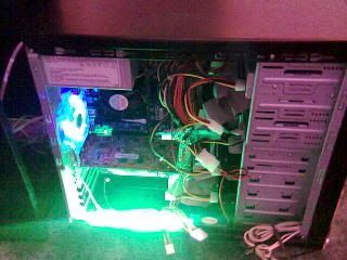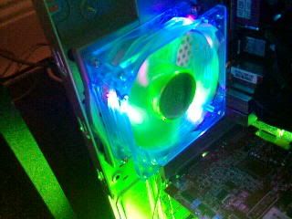 Neon Fan Shot: http://img.photobucket.com/albums/v1...uff/newpc4.jpg Side View: http://img.photobucket.com/albums/v1...uff/newpc3.jpg Front View: http://img.photobucket.com/albums/v1...uff/newpc2.jpg I'm thinking about sound-dampening it because it sounds like an airplane in its current status. I might add a DVD-RW or a HDD caddy later on. I can't really think of any other mods to do in the future, besides sleeving the cables.